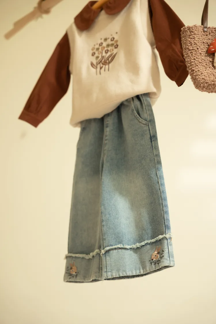 兔子刺繡牛仔褲