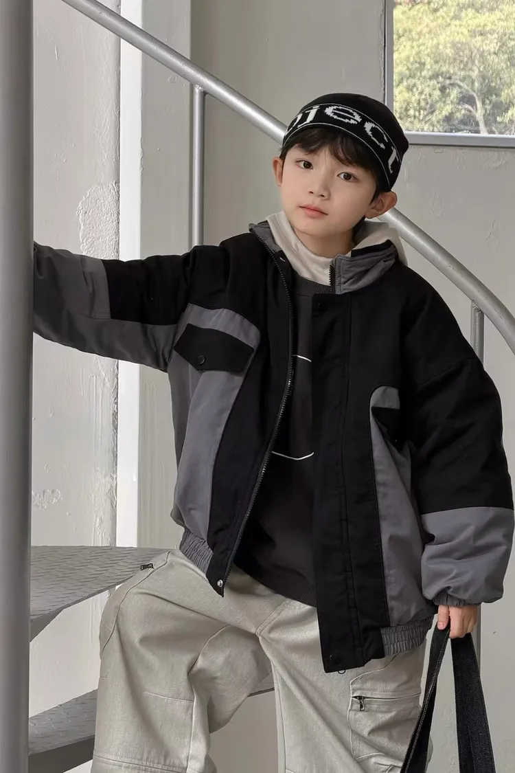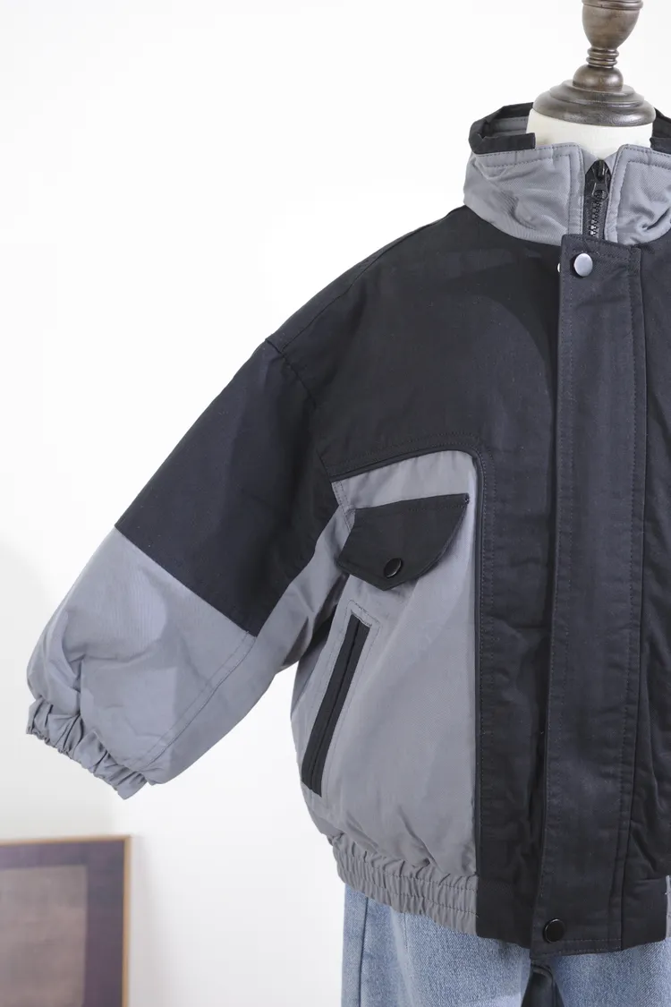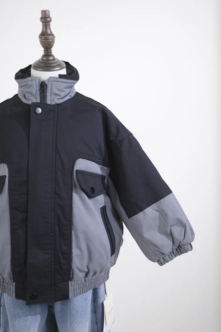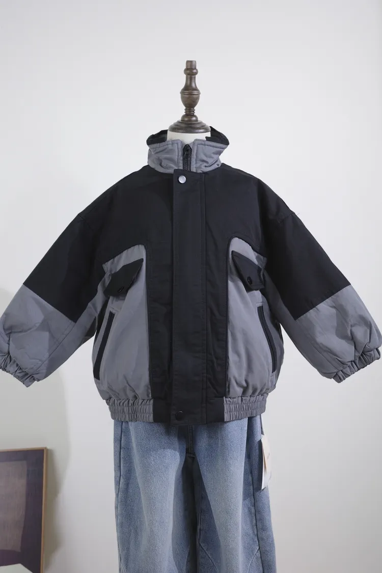 中大童-拼色棉服外套