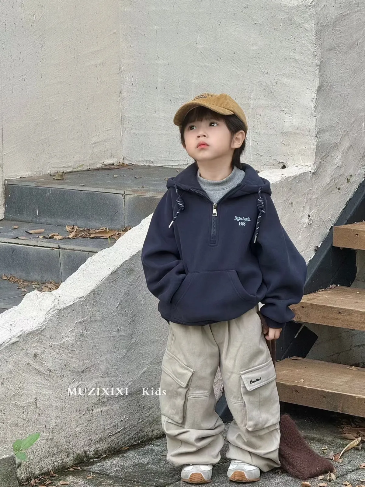 MZ半拉鍊抽線帽T