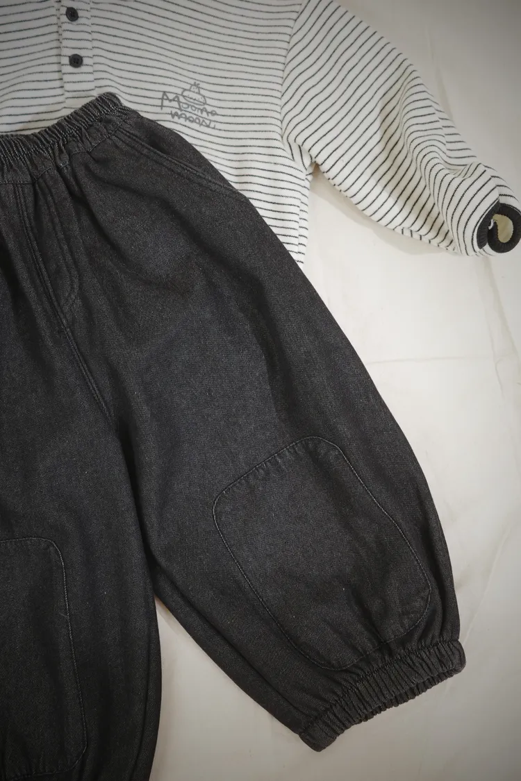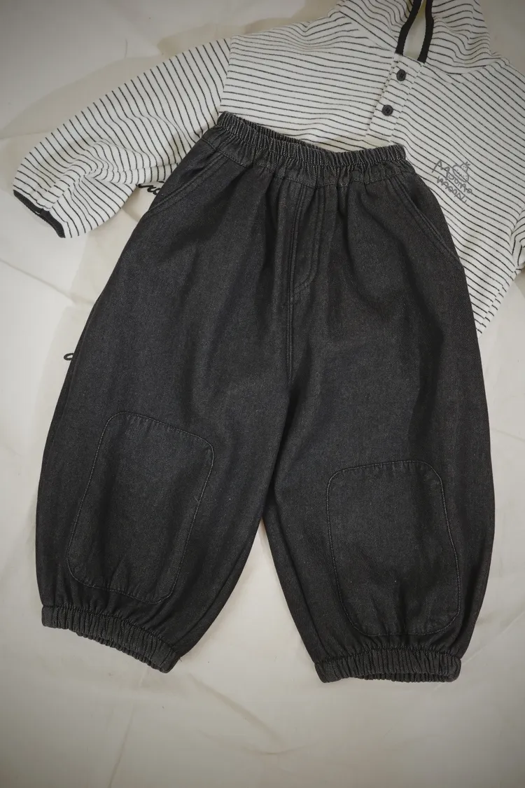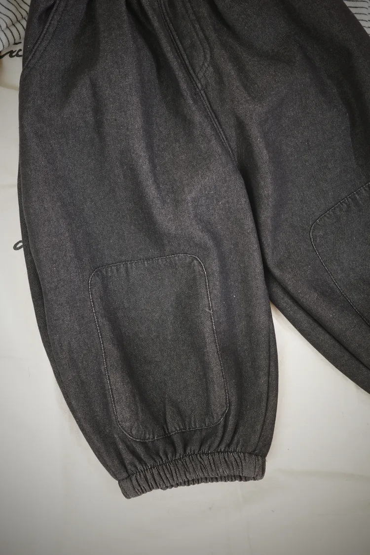 DM黑牛仔縮口長褲