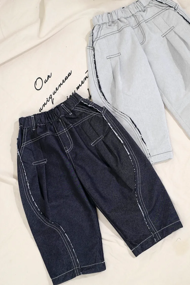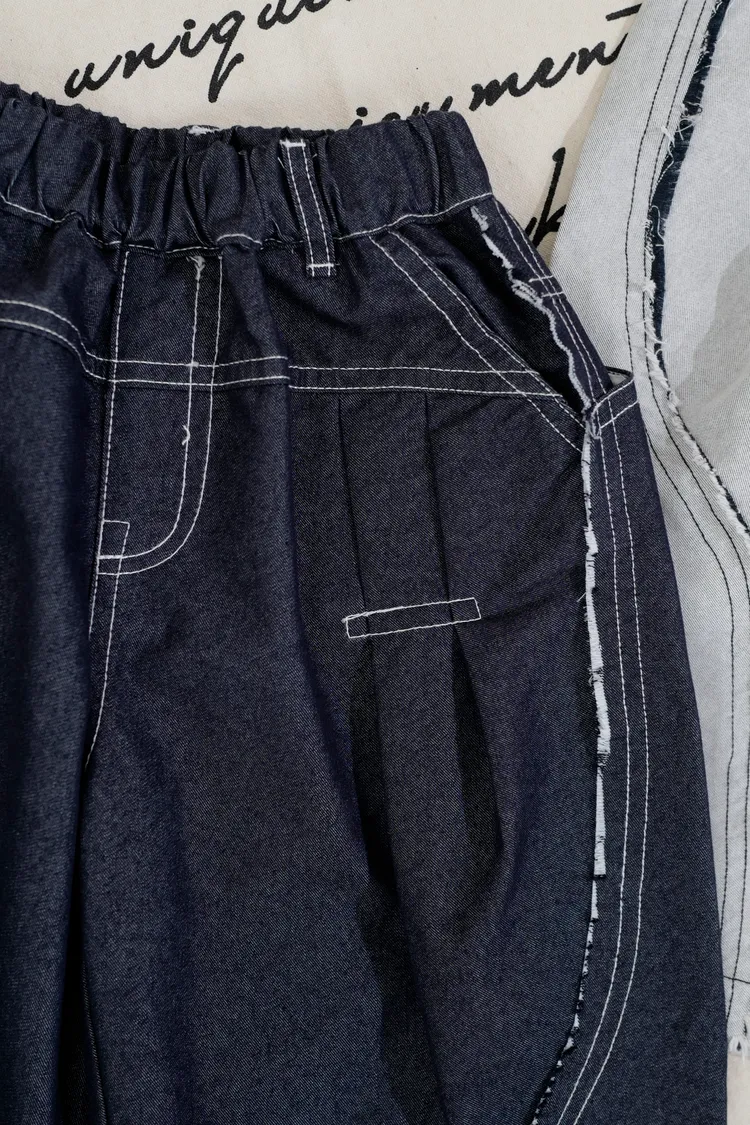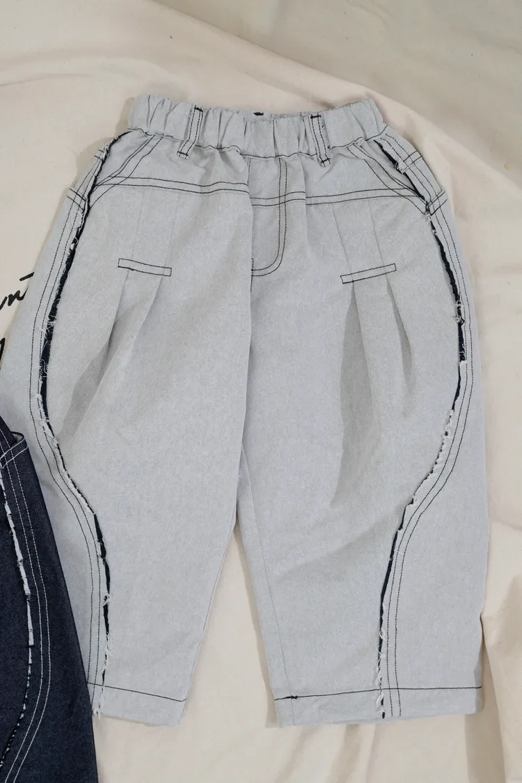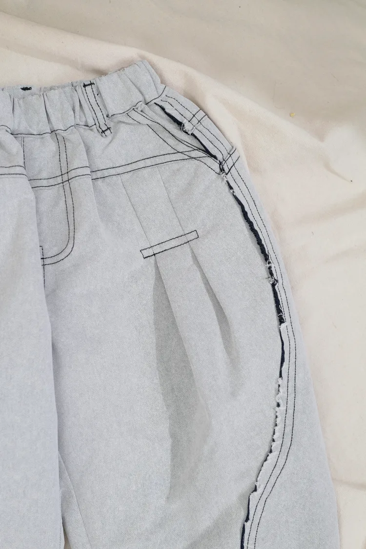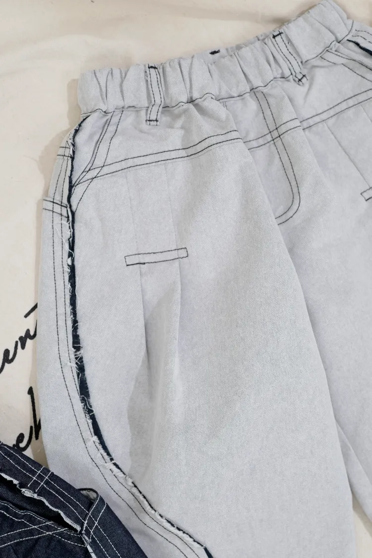 品牌款雙色毛邊蘿蔔褲