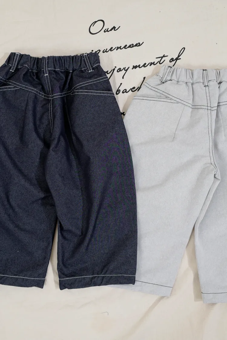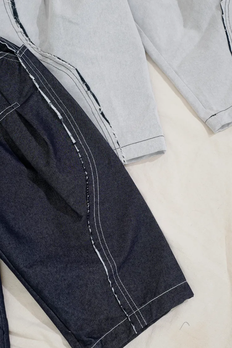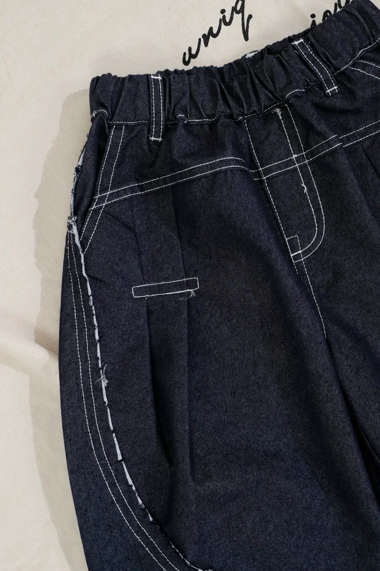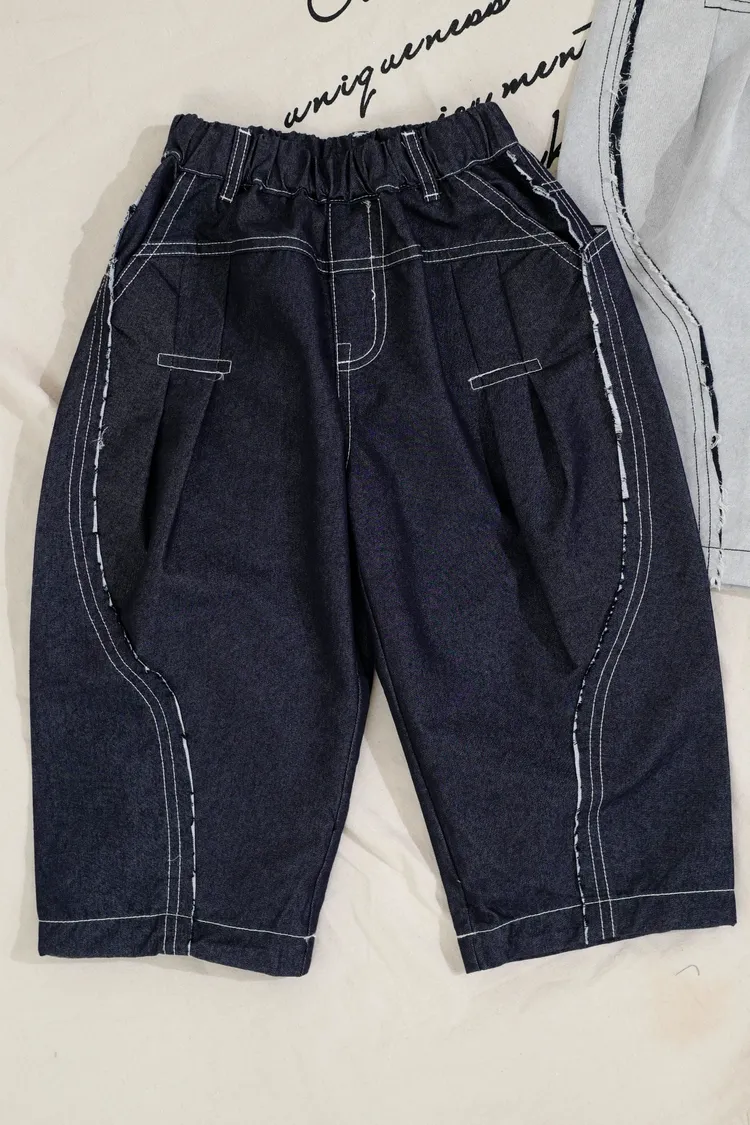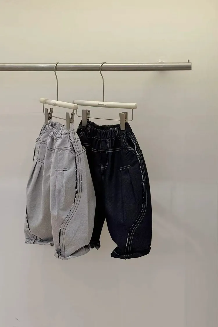 品牌款雙色毛邊蘿蔔褲