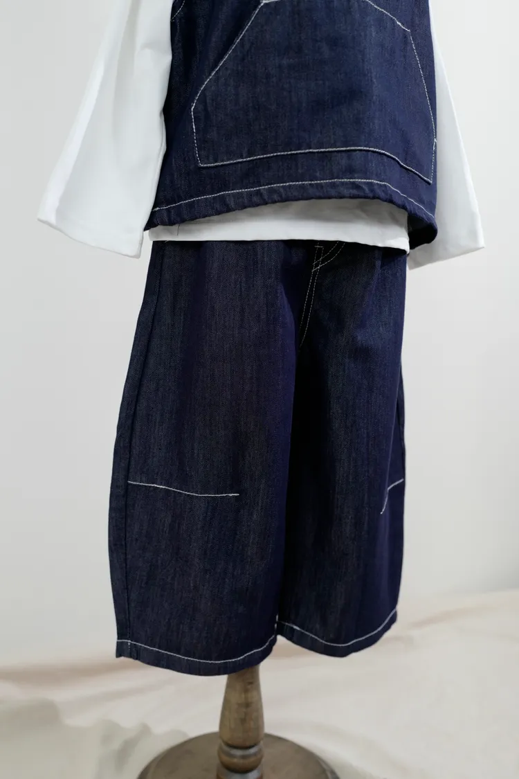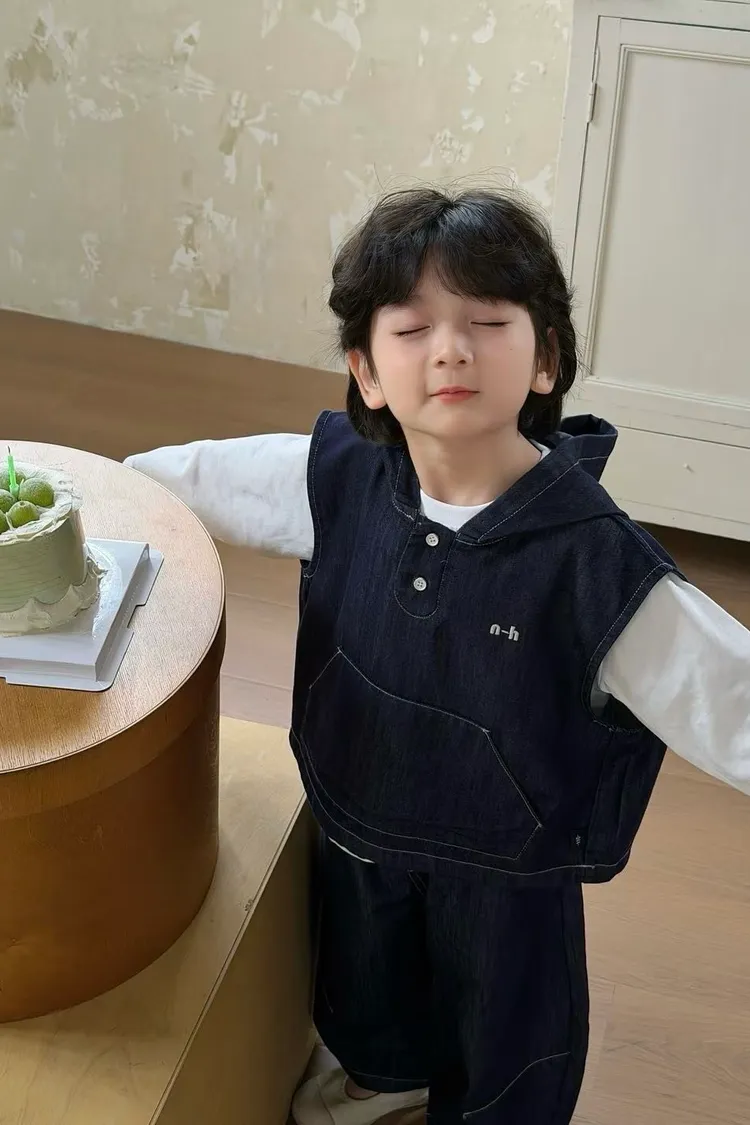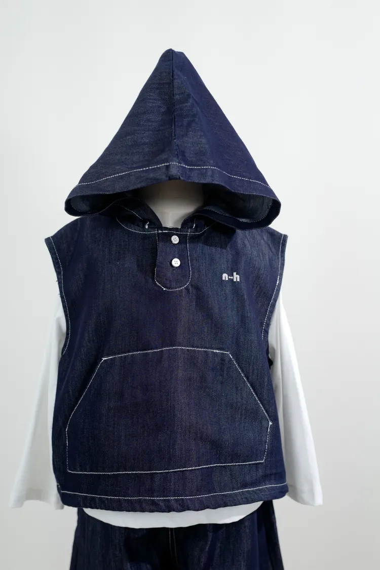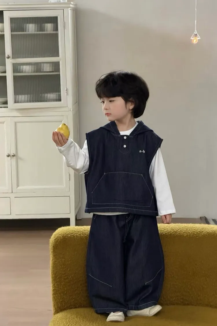 牛仔連帽三件套套裝(背心+內搭+長褲)