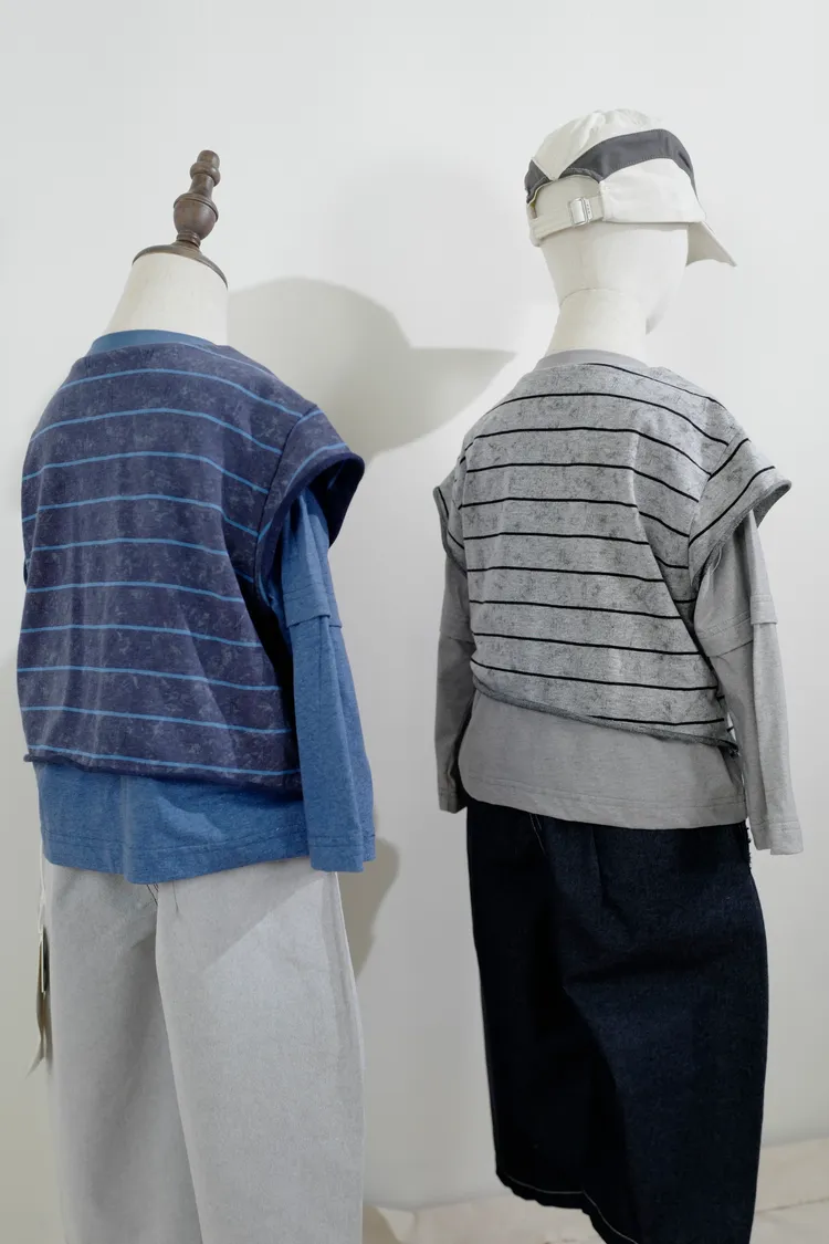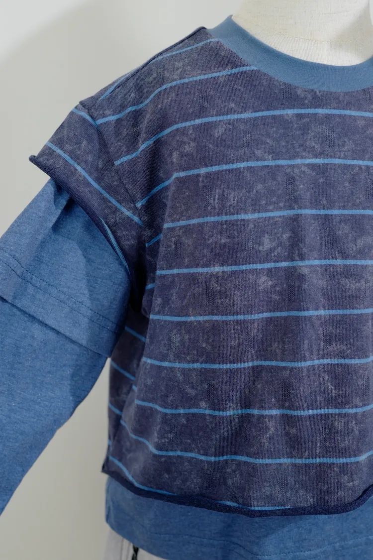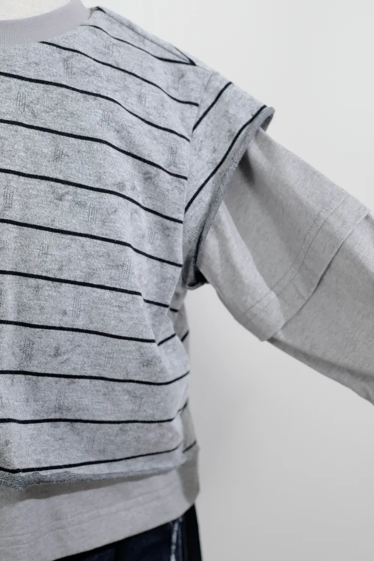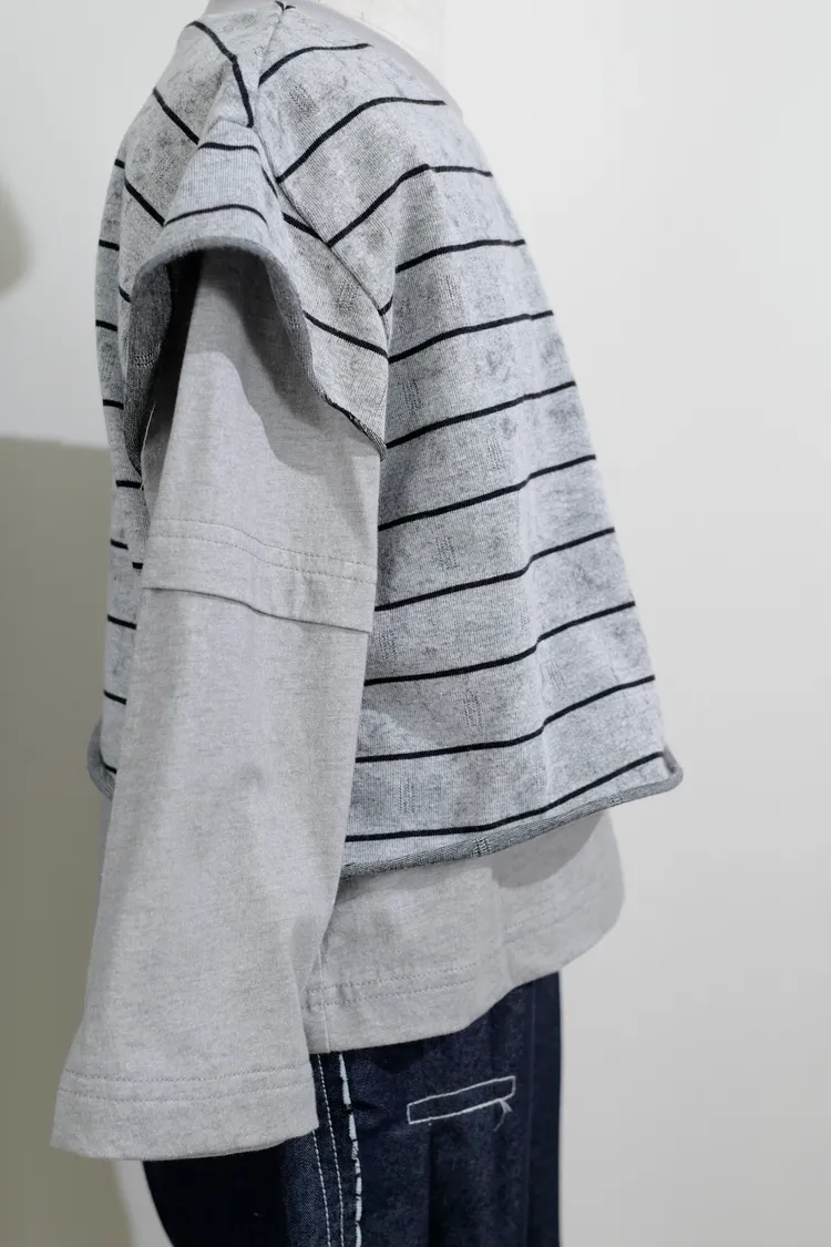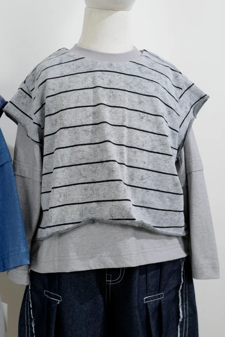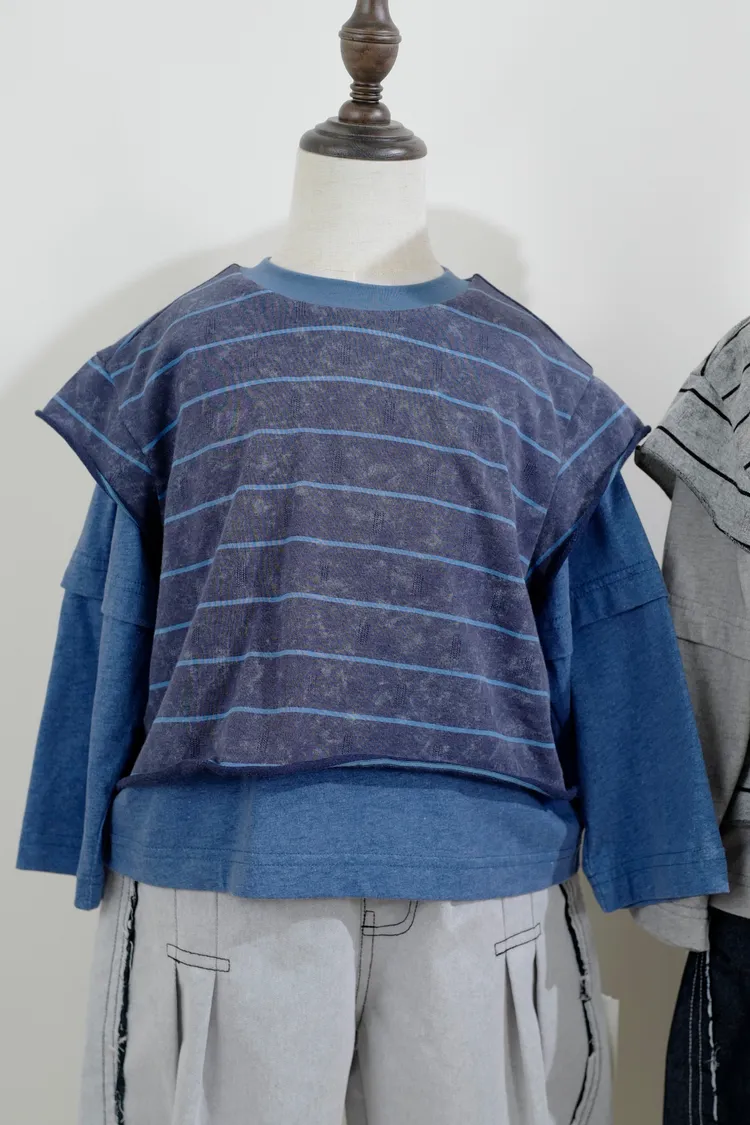 品牌款假三件線條上衣